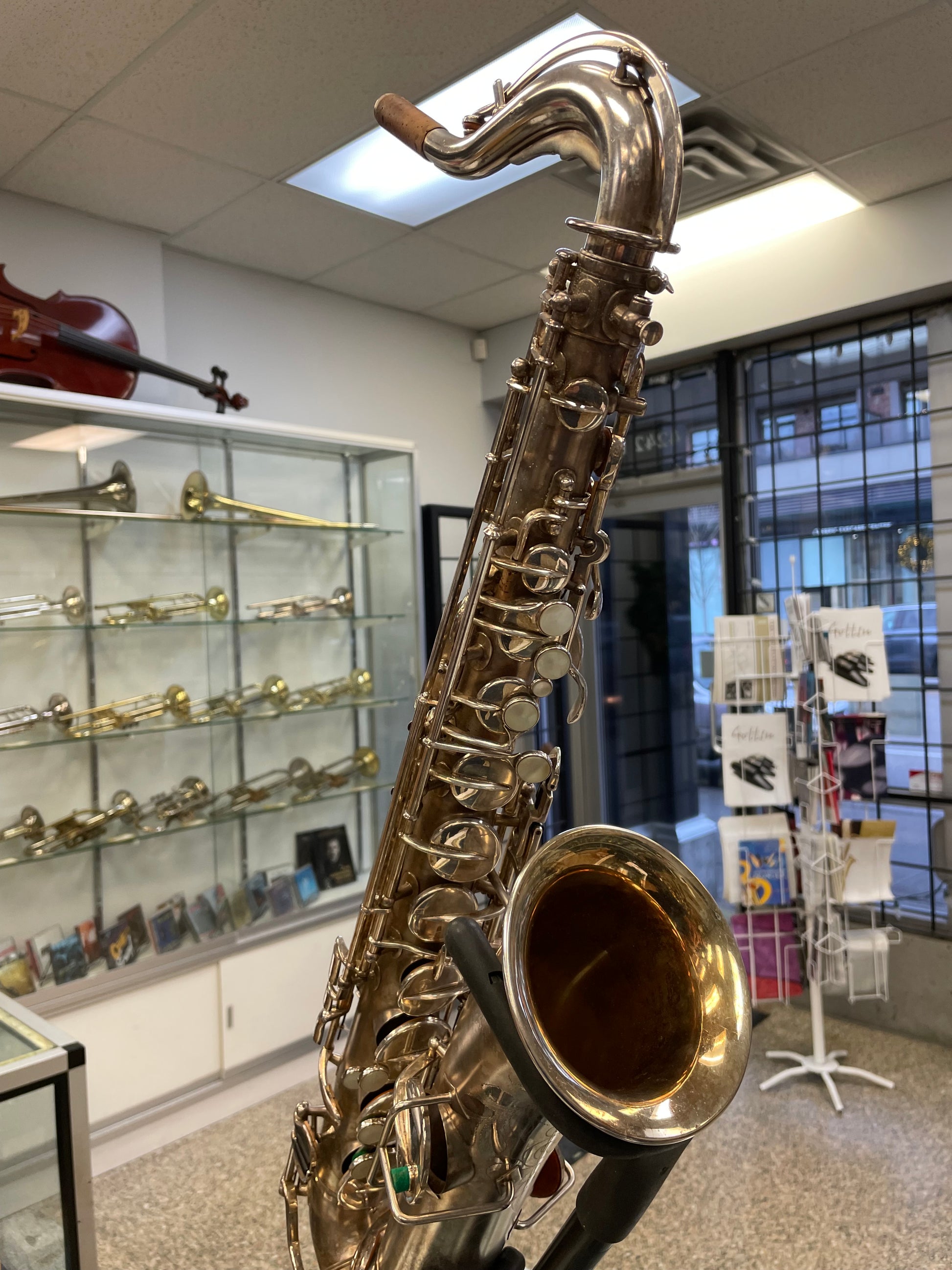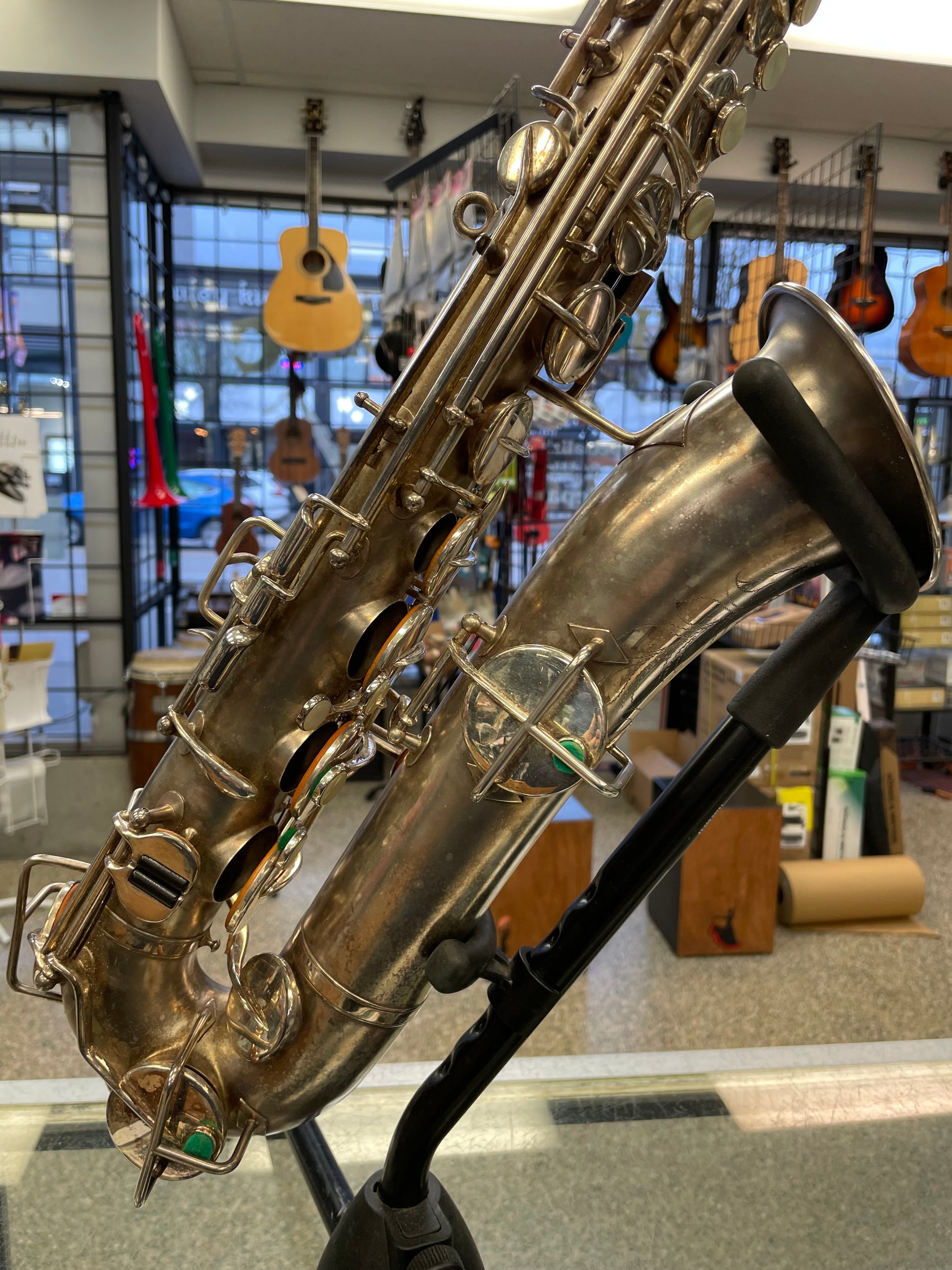 For sale is a Buescher Tenor Style C Melody Saxophone from 1925. The Instrument is playing as is but could use a good going over, it is being sold as-is. Cosmetically this sax is in great shape for it's age. The gold wash in the bell is completely intact, as-is the silver plating. There are minor dings and scratches. The pads are older, but are currently sealing nicely. Comes with the original Buescher mouthpiece and case. Please reach out with any questions!