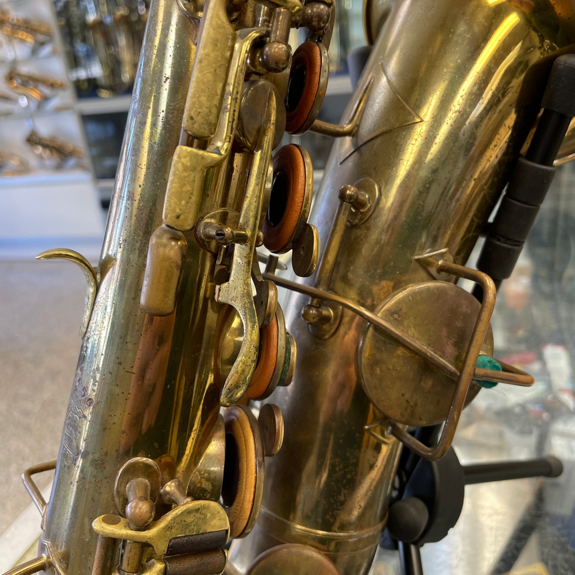 This sax is a piece of history. it is playable top to bottom with a mix of newer/older pads. Most of the original Lacquer is still present.