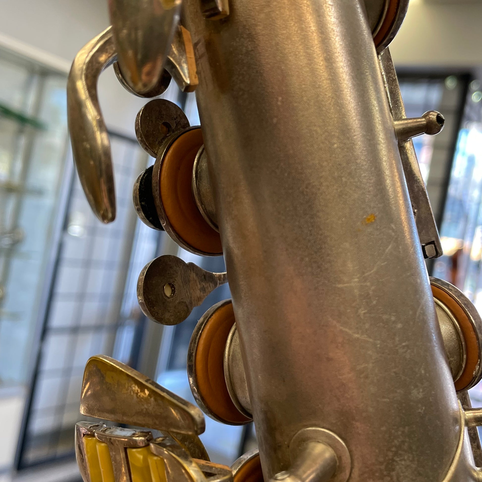 This Conn 10M Has been recently overhauled and broken in by a professional player. It has the big Conn sound and is in great condition for its age. The mechanism is very fast and tight. Minimal wear on the finish and the engraving is crisp and clear. The horn has been maintained regularly here at Massullo Music.
