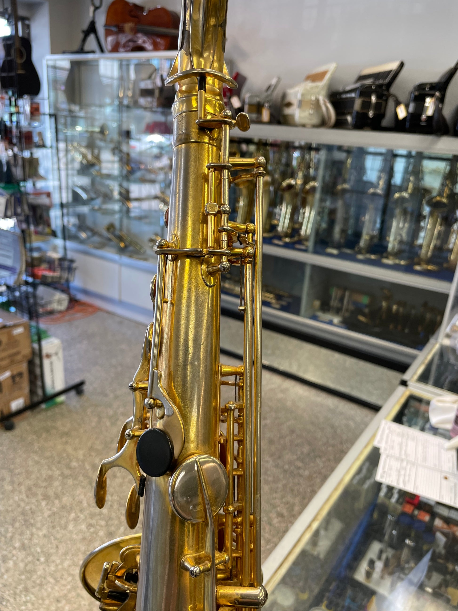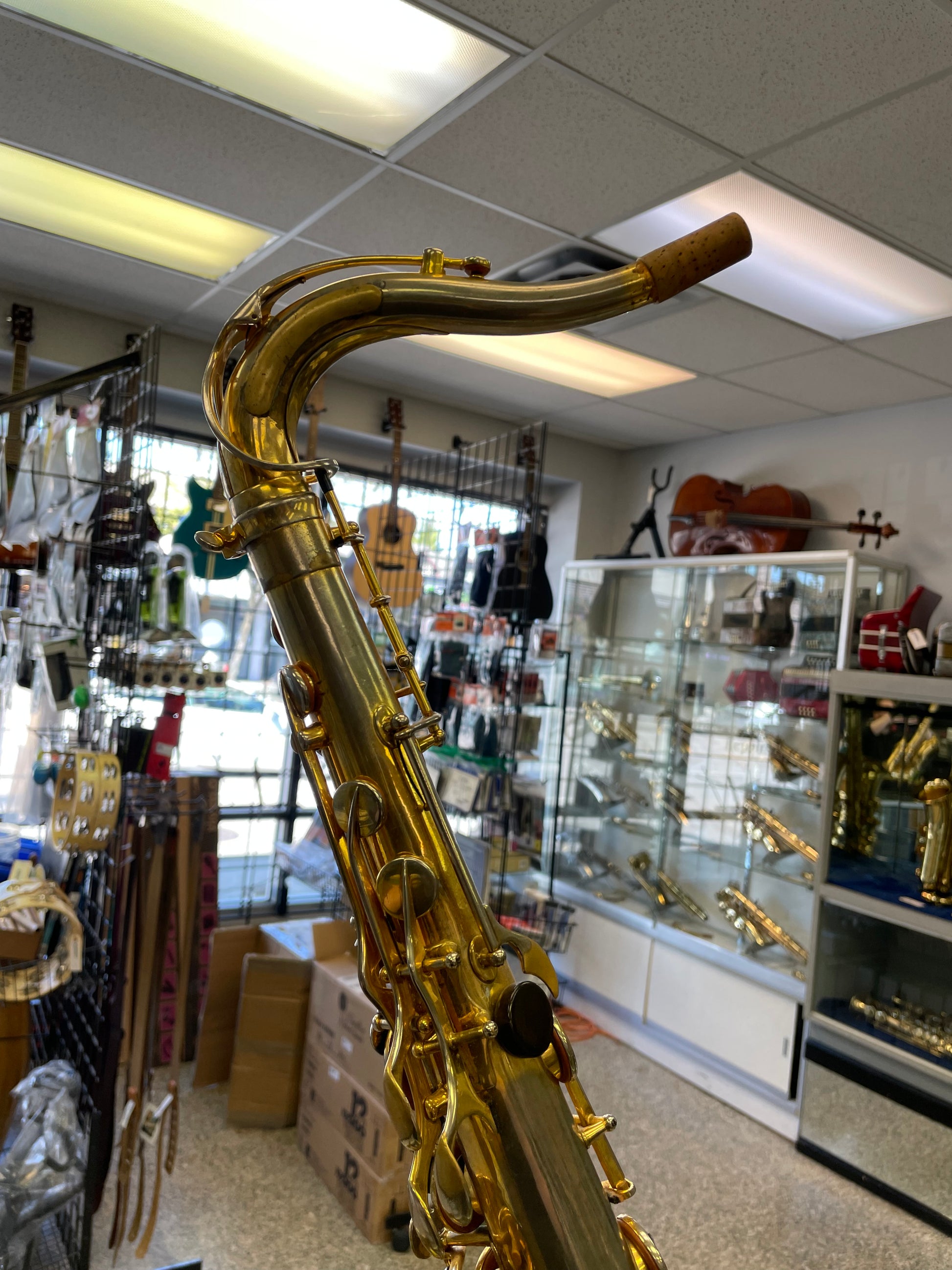 For sale is a 5 digit Selmer Mark VI Tenor Saxophone from 1954. This is a very early Mark VI. This saxophone has non-factory gold-plating which adds richness and warmth to the sound, despite it impacting the crispness of the engraving. The ergonomics are comfortable and the action is tight and quick. The neck has 2 brass plates soldered on to provide stability, some say the extra brass on the neck improves the sound.