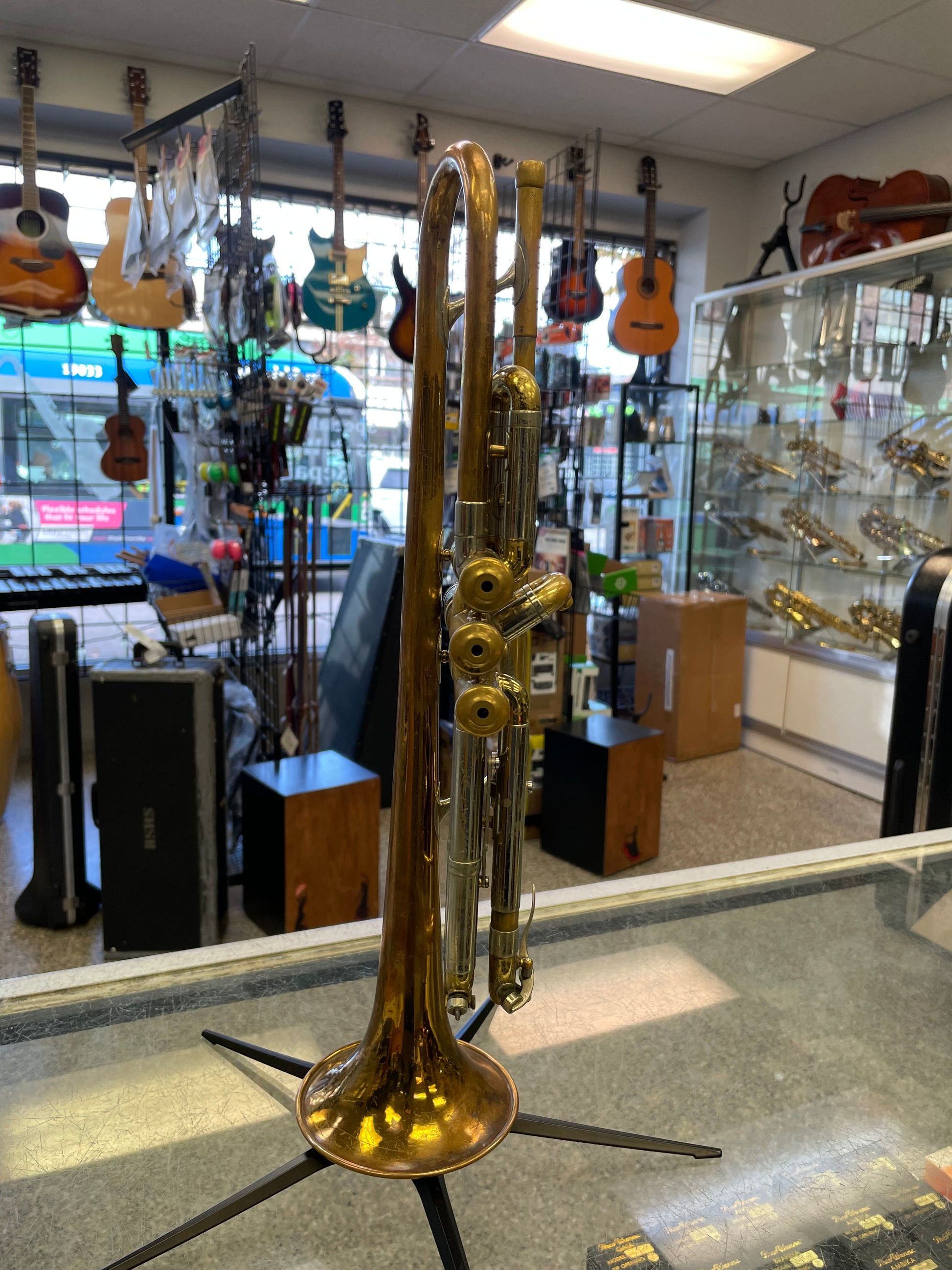 These horns have a dark, rich tone and have fast and smooth valves. the offset second valve is more ergonomic than regular trumpets. This instrument has been very well looked after and is ready to play!