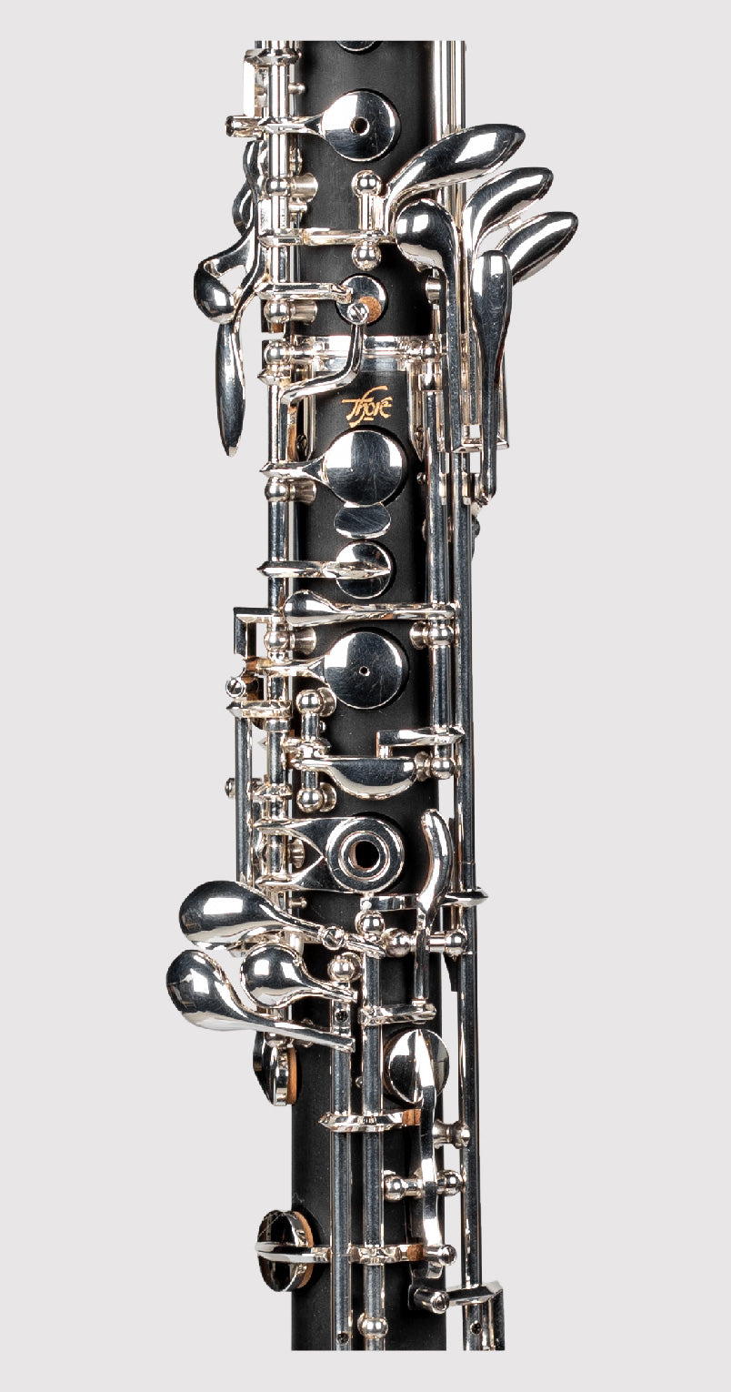 - Adjustment screw which lowers D ring to facilitate D to G slide (top octave)