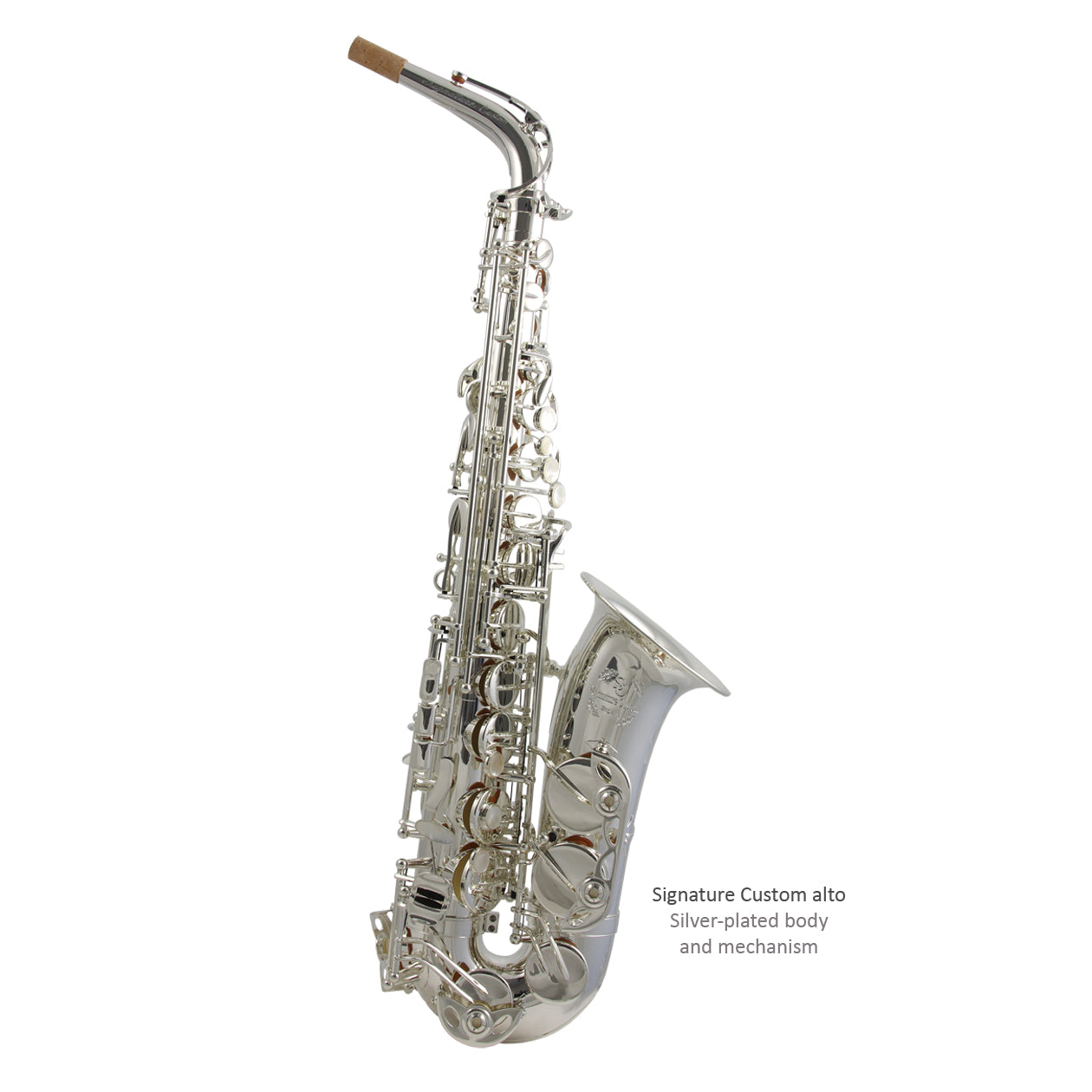 The Signature Custom RAW is also available in a silver plated model for both Tenor and Alto Saxophones. The silver plated horns have an extra bit of brightness compared to the other finishes while still retaining a huge core sound.